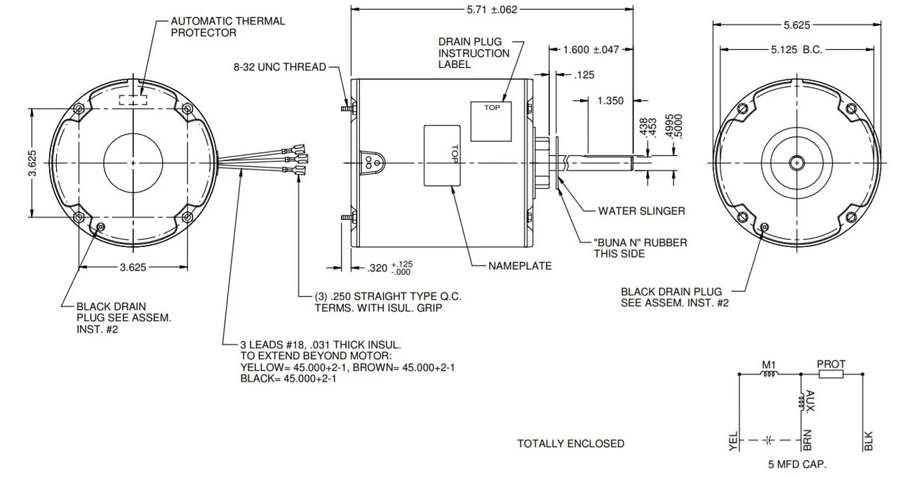 - Rotation = CW lead end; Shaft 1/2″ x 1.6″; 40° Ambient Temp