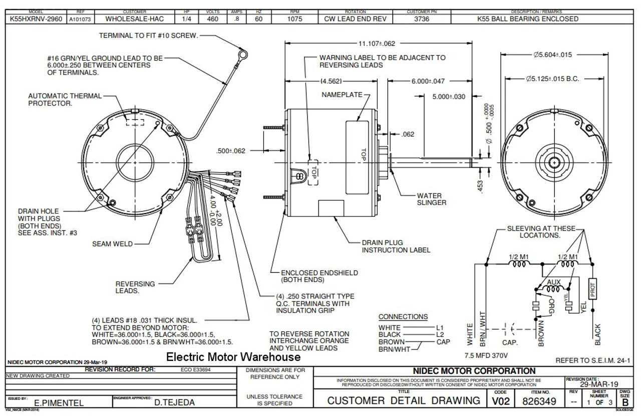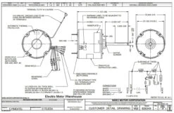 Permanent Split Capacitor Motor. Automatic Overload Protection. Continuous Duty; Totally Enclosed Air Over Enclosure; Class B Insulation; 60C Ambient Temperature; 30″ Leads.