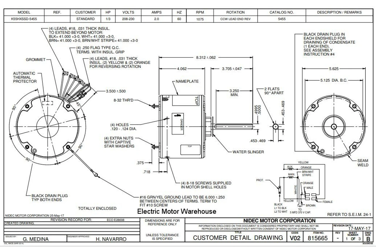 Permanent Split Capacitor Motor. Automatic Overload Protection. Continuous Duty; Totally Enclosed Air-Over Enclosure; Class B Insulation; 40C Ambient Temperature; 41″ Leads. K055SSD5455862B; Suggested aftermarket replacement for Rheem: 51-20687-01, 51-20688-01, 51-20689-01, 51-20690-01, 51-21836-01, 51-21836-01, 51-21837-01, 51-21838-01, 51-21839-01, 51-21845-03, 51-23053-11, 51-41315-01, 51-41316-01, 51-41317-01.