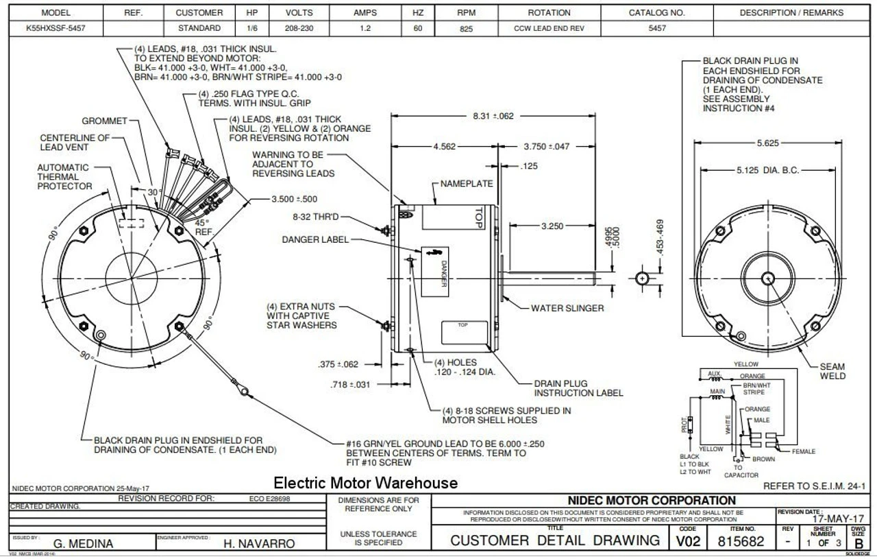 Permanent Split Capacitor Motor. Automatic Overload Protection. Continuous Duty; Open Enclosure; Class B Insulation; 40C Ambient Temperature; 41″ Leads. Application: Rheem outside condenser fan units. Suggested aftermarket replacement for 51-20760-91, 51-23055-12, K55HXMAB4123, K55HXPZG5379, K055SSF5457862B