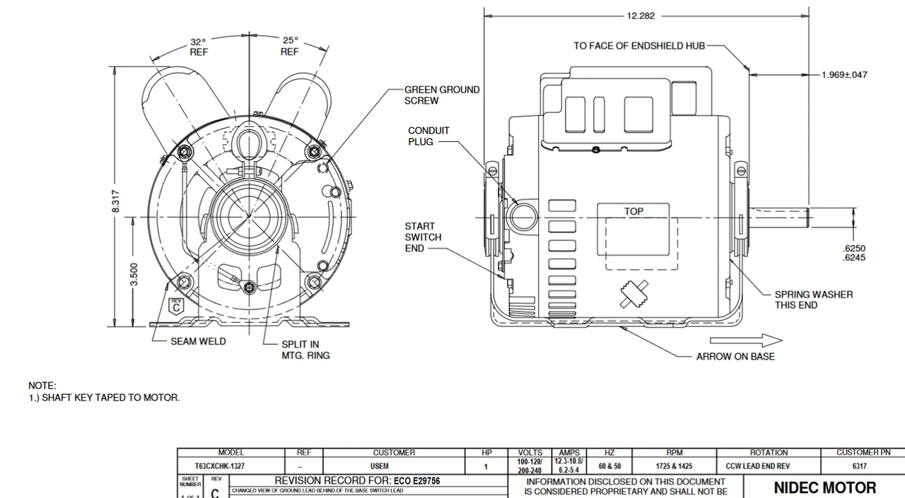 Belt Drive Fan Motor for central HVAC systems. Wiring diagram on motor name plate. ODP = Open Drip-Proof, T063CHK1327022B