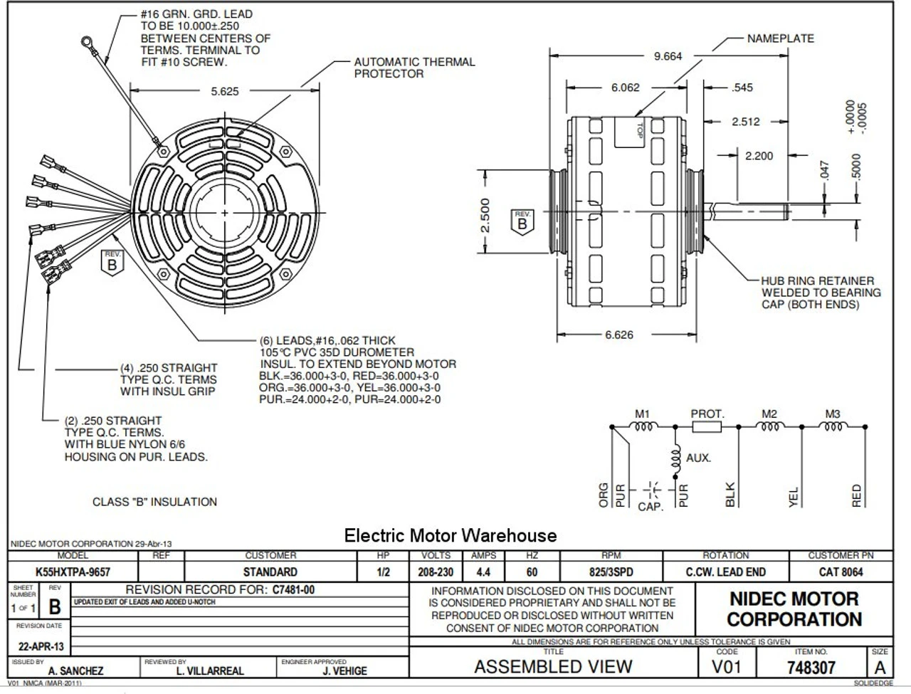 Permanent Split Capacitor Motor. Automatic Overload Protection. Continuous Duty; Open Enclosure; Class B Insulation; 40C Ambient Temperature; 36″ Leads. K055TPA9657011B. Suggested after market replacement for 81G5101, K55HXJJT2904