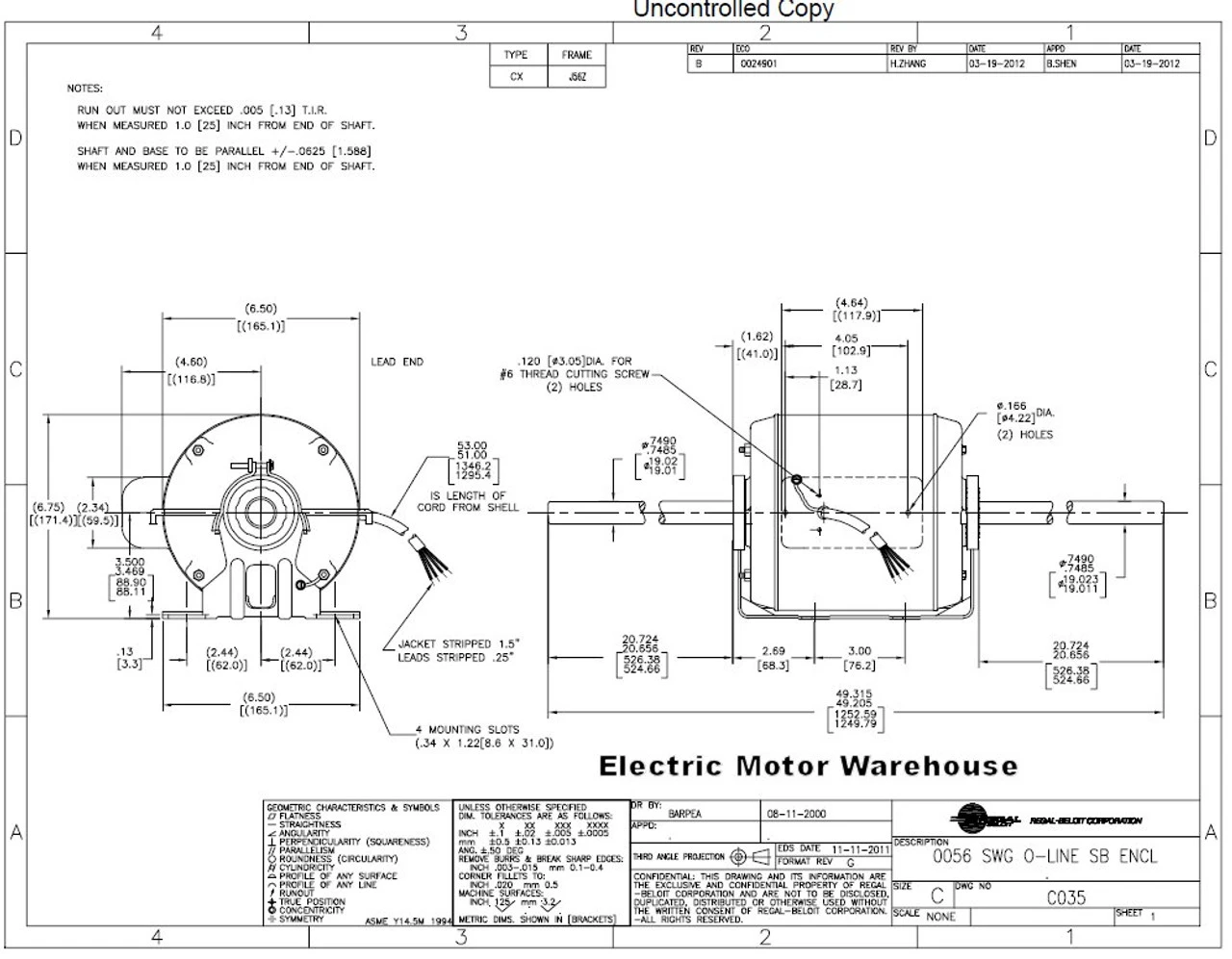 - 56Z Frame; Shaft=20 1/4″ x 3/4″ x 20 1/4″ Double Shaft