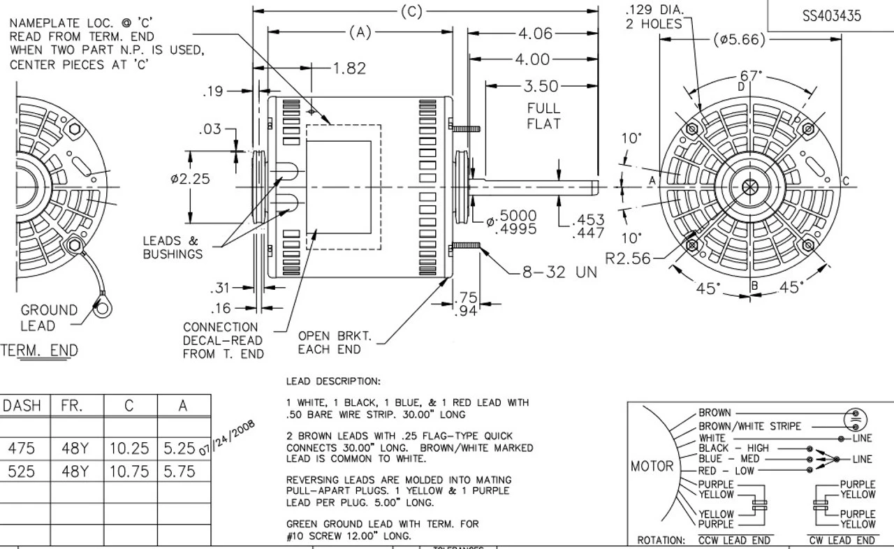 - 3/4 hp 1075 RPM, 10.2 amps, 115 Volts 60 Hz, Permanent Split Capacitor (PSC)