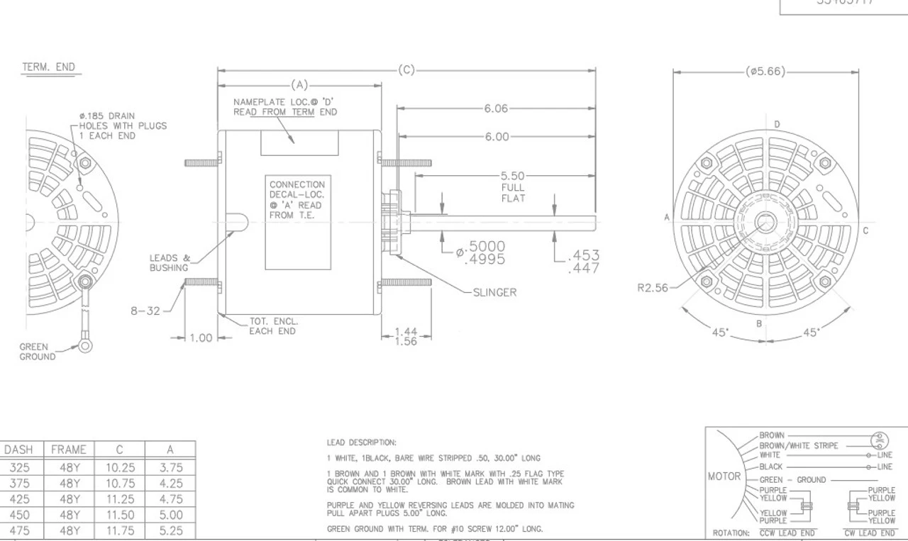 X411 Marathon 1/6 Hp 208-230V 1075 RPM TENV 48Z Frame Condenser Fan Motor