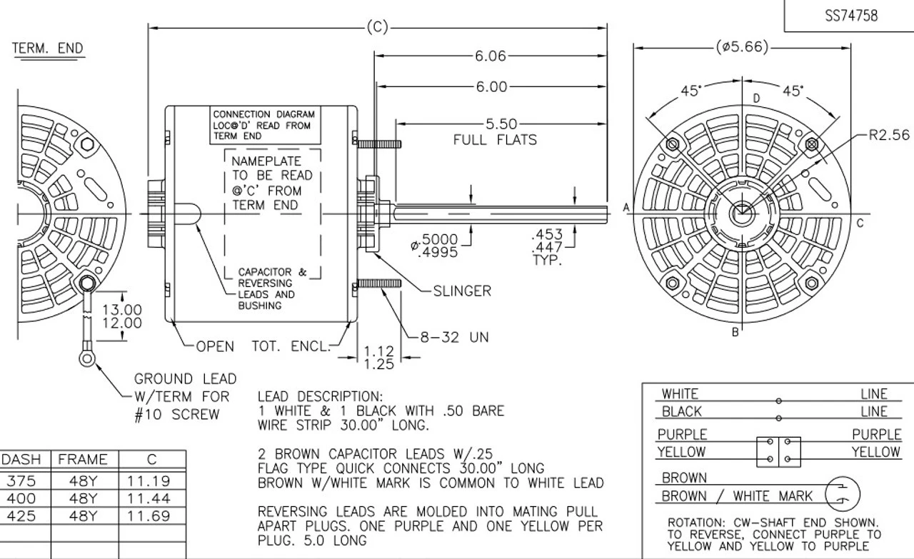 Condenser Fan Motors are used in air conditioning coolant condenser units usually found outdoors. Shaft may be vertical or horizontal. OPAO = Open-Air-Over so motor must be in air-stream. 048A11O2054