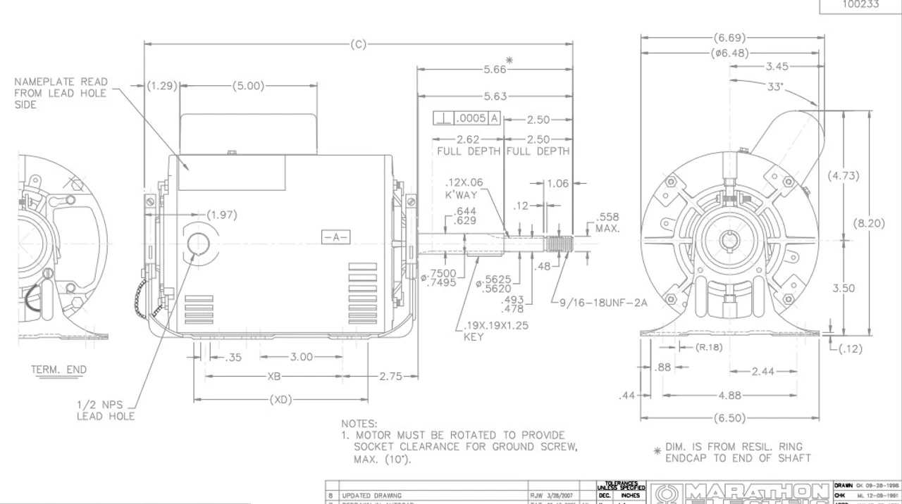 - NEMA 56Z Frame Special Shaft 5 5/8″ x 5/8″ Diameter, 1 speed